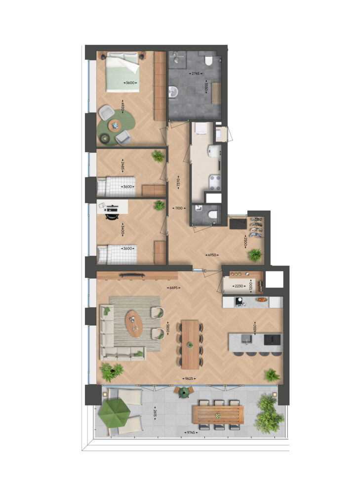 De kroon op het plan! De exclusieve penthouses hebben een riante indeling, extra grote raampartijen, een royaal terras en een weids uitzicht. Ook het afwerkingsniveau getuigt van topklasse. Hier ervaar je alle rust en privacy en geniet je van een zee aan leefruimte en wooncomfort. Een unieke plek voor wie de lat hoger legt.
